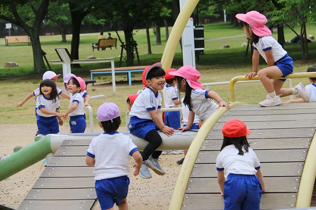 公園に着き、先生にお約束を聞いたら早速遊具へ走って行きました。