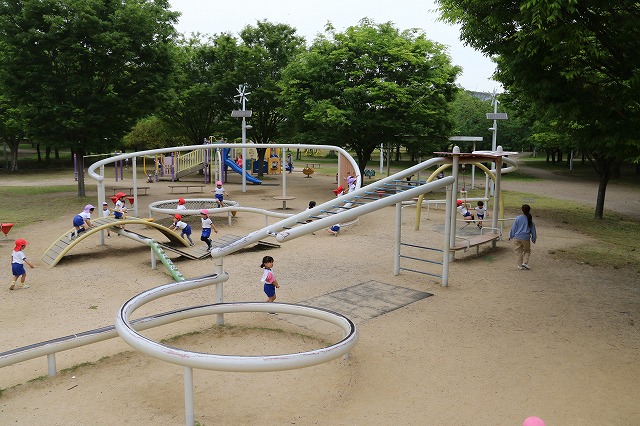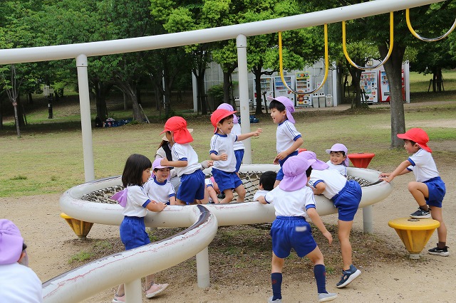 お友だちと「次は、どこへ行く?」とお話しながら回ったり、「クモの巣みた~い」と遊具の上に乗ってみたり・・