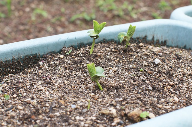 小指で穴をあけて・・種を入れて・・土を優しくかぶせました。