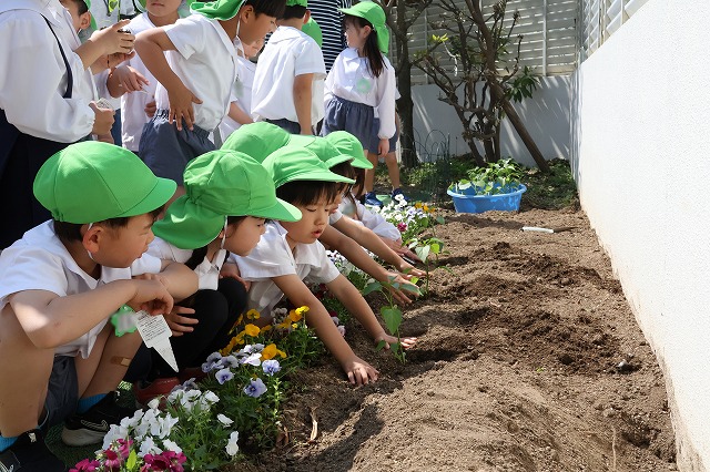 こちらは年中組さんが連休前(4月22日)に植えてくれました。