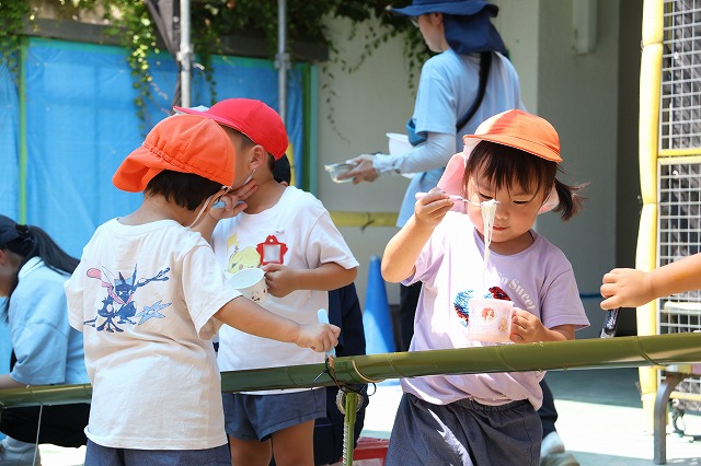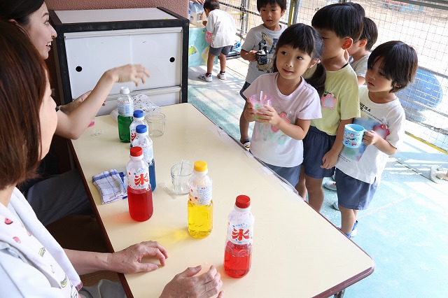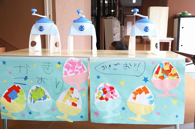 先生たちによるかき氷屋さんも登場しました!好きな味を選んで楽しみました。やっぱり暑い日に食べるとおいしいね!