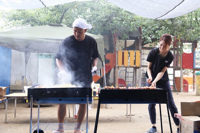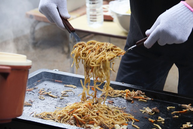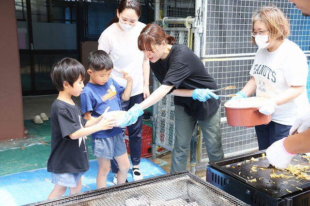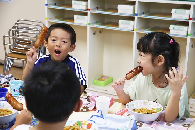 お兄ちゃん先生と給食室の先生が屋台の焼きそば・フランクフルト屋さんをしてくれたり♪