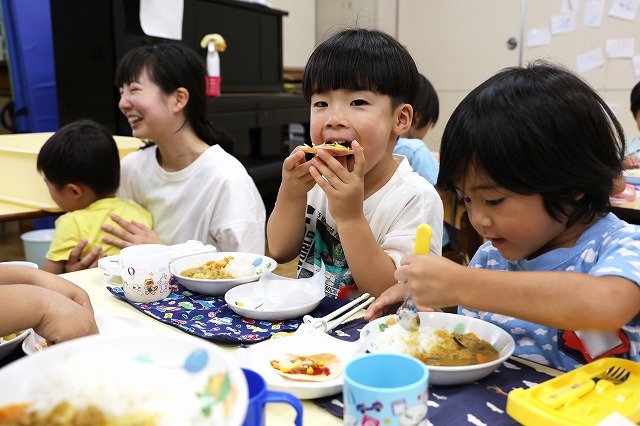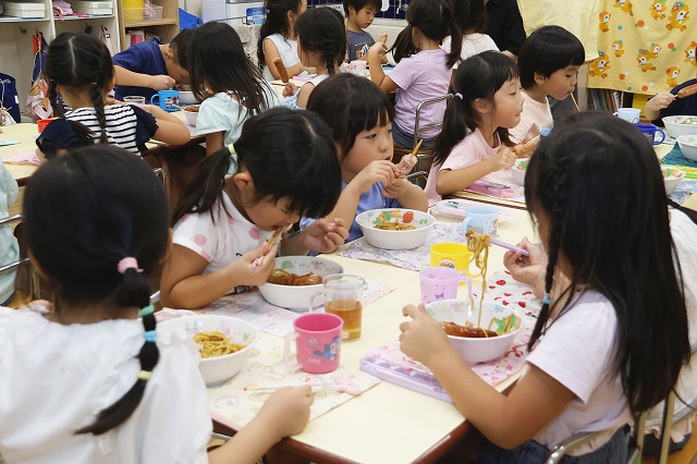 みんないつもの給食以上においしかったようでモリモリ食べていました。