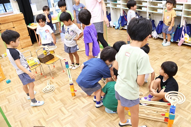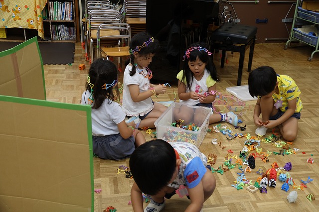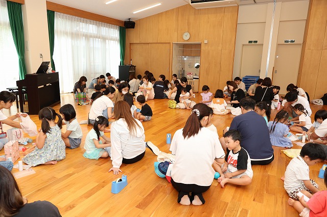 夏休みも折り返しとなってきました。今年は本当に暑い暑い夏となりました。その中でも保護者の方がお仕事の方は、幼稚園で先生やお友達と一緒に遊びながら過ごしています。