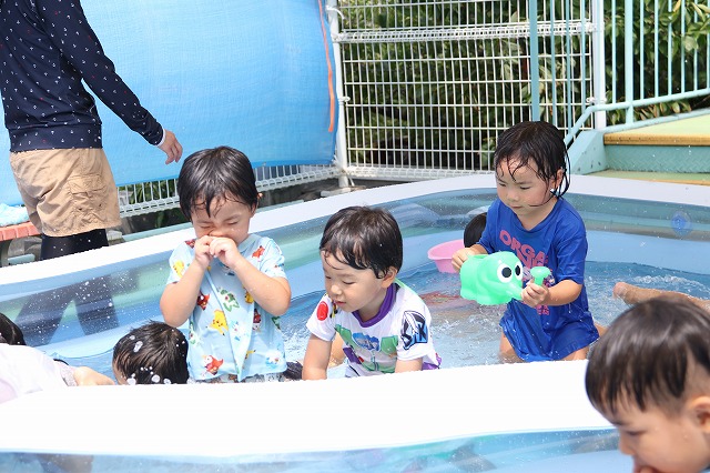 夏休み始め方行ったプール遊びは、多い週で3回入りました。やっぱり子ども達はお水が大好き!! 毎回、大はしゃぎで入っていました。