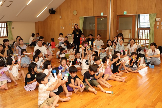 そして、最後に完成したマラカスで子どもたちの大好きな『勇気100%』を演奏して大盛り上がり‼︎みんな嬉しそうに歌いながら、思うままにマラカスの音を奏でていました♪アンコールもあり、終始笑顔が絶えない会になりました♪
