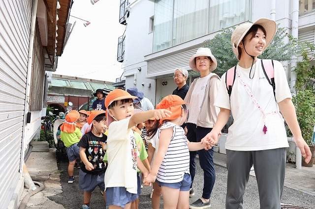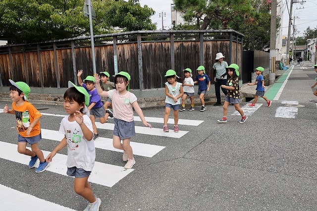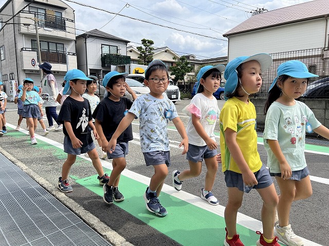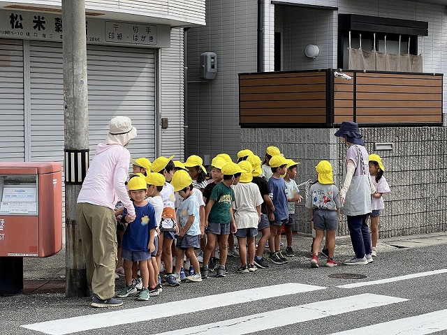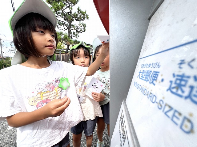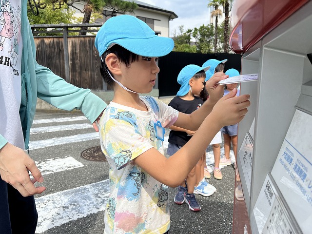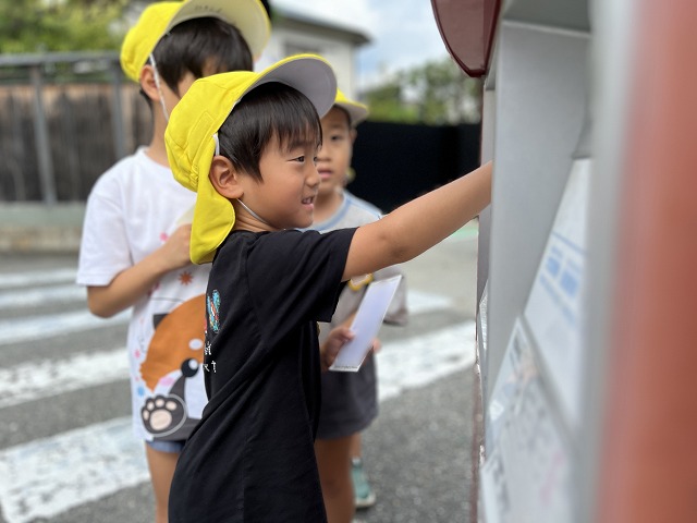 年長組さんは、年中組さんの葉書きも預かって近くのポストに出しにいきました。