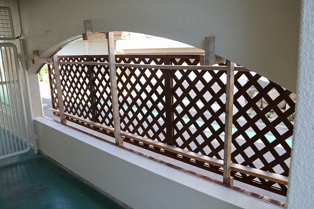 塗装の為にどうしても切らなければいけなかった生けこみの代わりに木製のラティスを取り付けました。