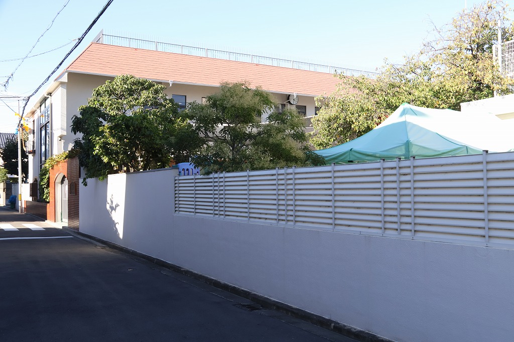 夏休みの間、本館の壁や屋根の塗装を行う為、園舎はずっと足場に囲まれていましたが、夏休み最終日にやっと足場が取り払われ、久しぶりに園舎が見えるようになりました。