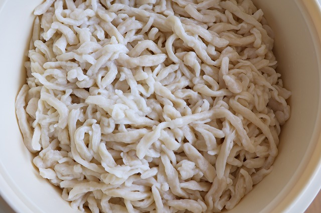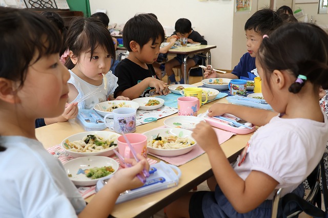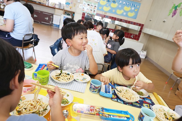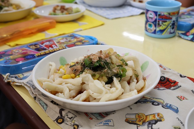 「おいしーい!」「いつものよりもちもちしてるー」「変な形なのがあった!」とツルツルっとおいしそうな音を響かせながら味わって食べていました。たくさんお代わりをして満足そうな様子でした♪