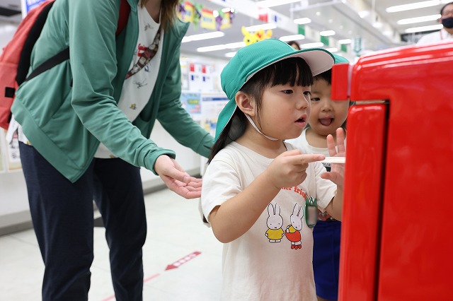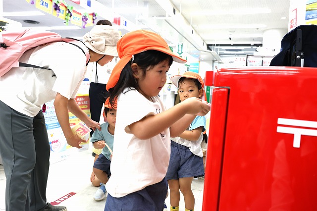 そして、郵便局の方たちが優しくサポートしてくださり、子ども達が自分でハガキを入れました。「おじいちゃんおばあちゃんにハガキがちゃんと届きますように!!」