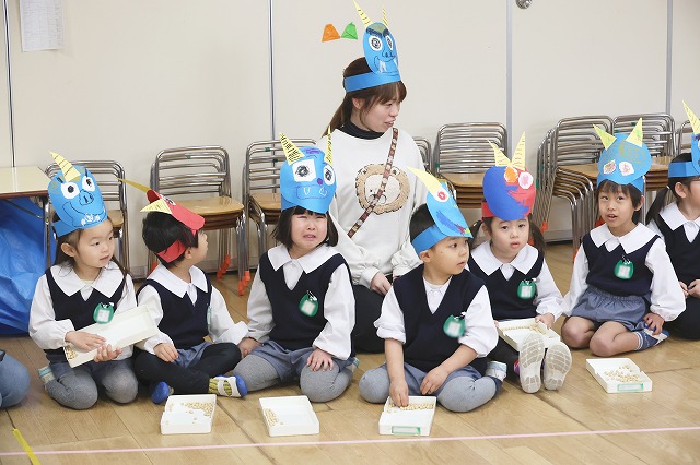2月3日(火)節分の日、幼稚園では節分の豆まきを行ないました。