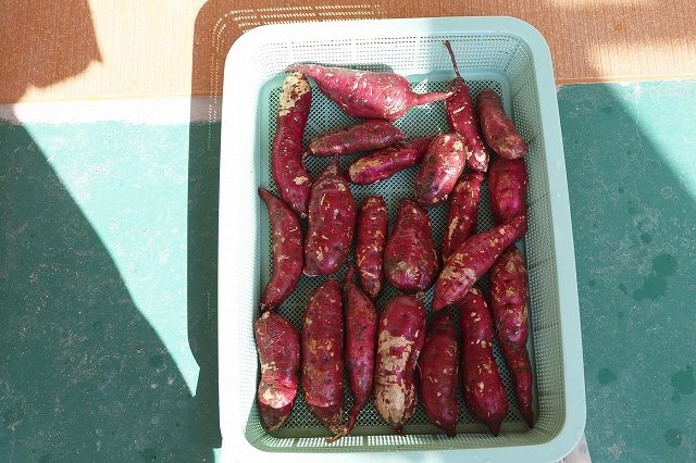 前日においもをきれいにお水で洗って、焼きいもの準備。おいもって洗うとこんなにきれいな色になるんだね。