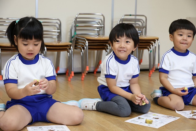 先日、いもほりに行ってきた年長組さん。焼きいもをしようと焼きいもサイズのおいもを取り置きしていました。堀りたてよりも少し寝かしたほうがおいしくなるということで、10月30日(木) 焼きいもパーティーをすることにしました。