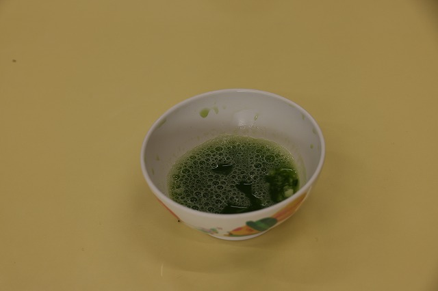 最初にビニールに入った刻んだお野菜にお塩を入れてもむところから。グループに分かれてもみもみしていくと・・・水分がたくさん出てきました。