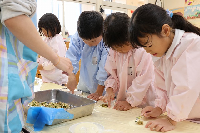 11月4日(火) 年長組さんが餃子づくりをおこないました。