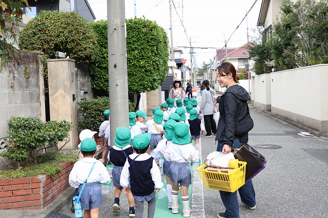 楽しい時間は、あっという間。「また来れるといいね♪」と言いながら帰ってきました。帰り道は、「おなかがへった~」「つかれた~」という声も聞こえましたが、みんな幼稚園まで頑張って歩いて帰ってきました。