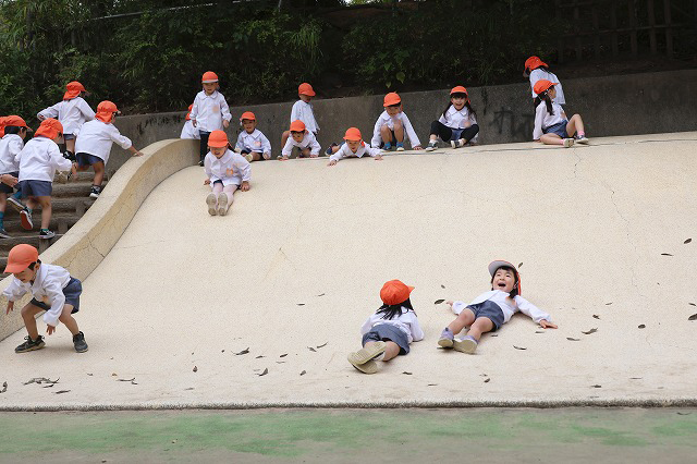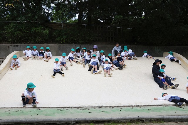 すべり台は、クラスのお友だちみんなで滑ったりもして、幼稚園のすべり台とはまた違って楽しかったようです。