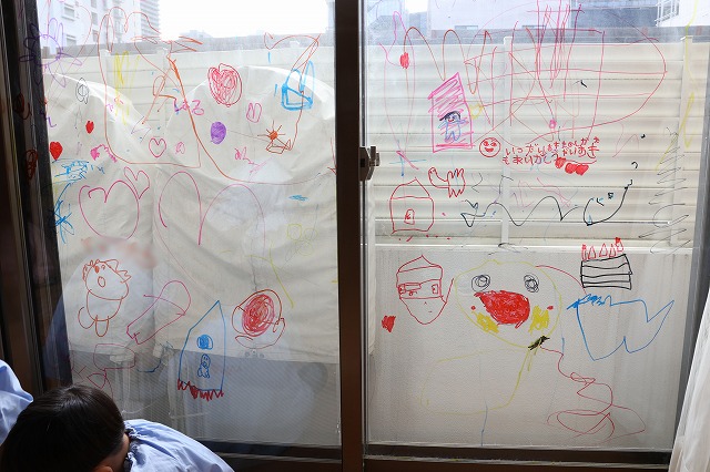 子どもたちみんなと先生たちが書き込んだお部屋はとってもカラフルで明るくなりました♪ばら組のお部屋も喜んでくれているように感じました。