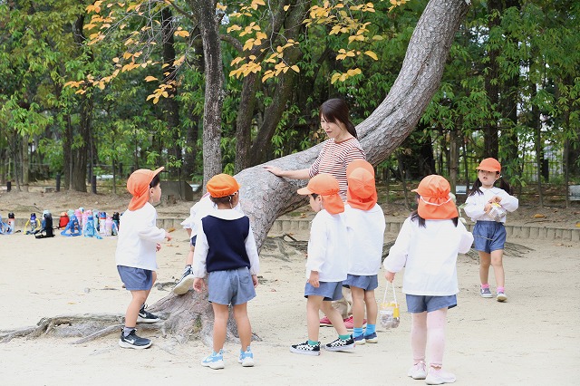 運動会が終わり秋の気配がましてきました。先日は、グラウンドに行くと周辺にたくさんのどんぐりを見つけて次々と拾っていた年少組さん。今週10月29日(水) 初めてお弁当を持って遠足に行ってきました!