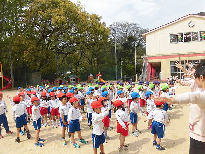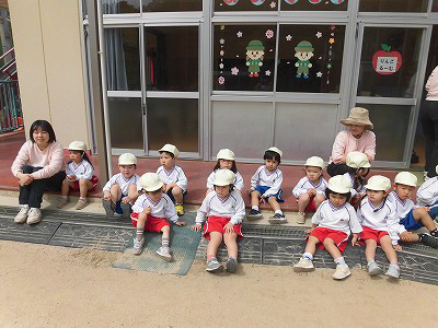 初日の今日は園庭を1~2周するところから。年長さんはお寺のほうまで走りました。お友だちとワーキャー言いながら楽しそうに走る子どもたちでした♪