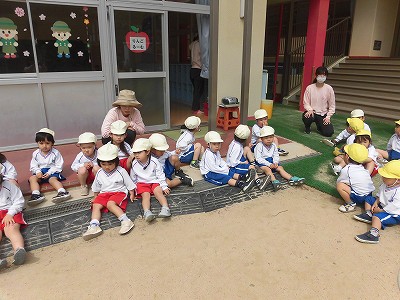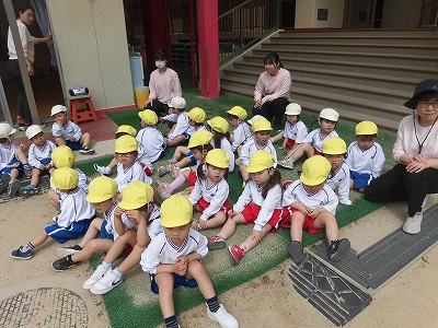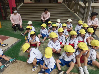 お墓側に逃げたクラスも点呼をとり、担任の先生から同様に話を聞きました。非常階段を使ったり、お墓側に逃げるのは初めてという子が多い中、みんな落ち着いて避難できていました!