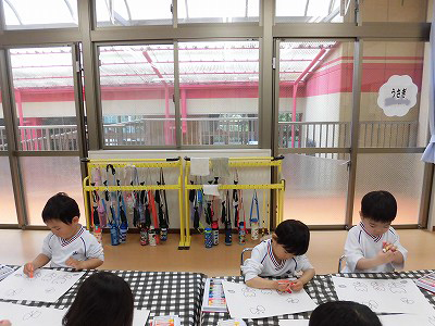 そしてあゆみに「生活発表会シール」を貼り、先生から「本番ではおうちのひとにかっこいい姿を見てもらおうね!」と話がありました。みんな真剣に話を聞き、やる気満々の様子でしたよ!