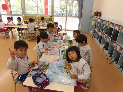 誕生日のうたを歌います。「たんたんたんたん たんじょうび~♪…こんなに大きくなりました~♪」