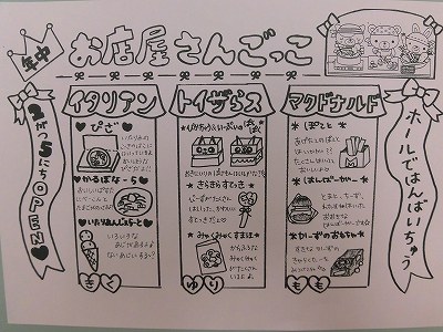 明日はいよいよお店やさんごっこ!おうちの方とお買い物をしたり、店番をすることを子どもたちはとっても楽しみにしています♪