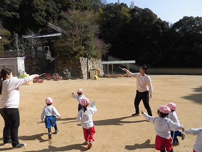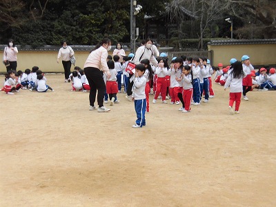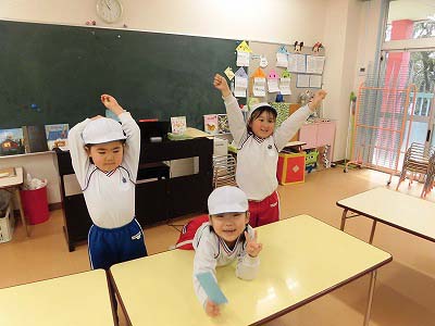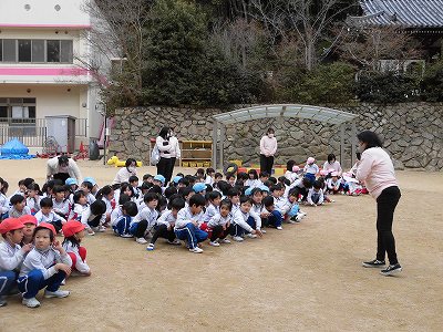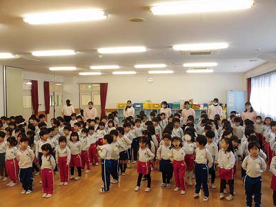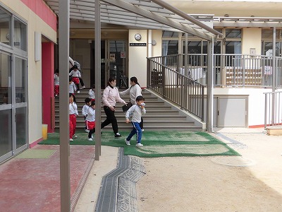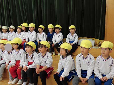 放送をよく聞き、今いる場所から園庭へ避難します!
