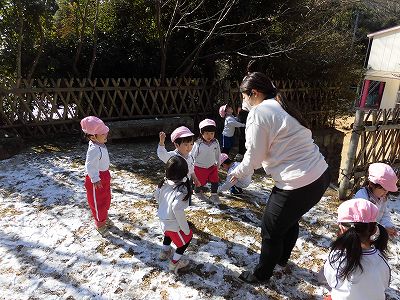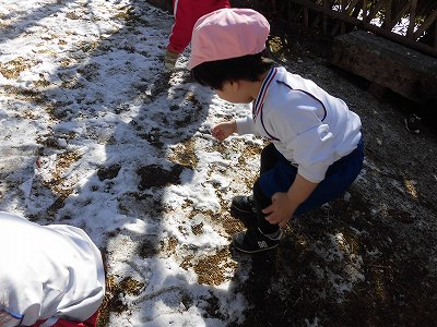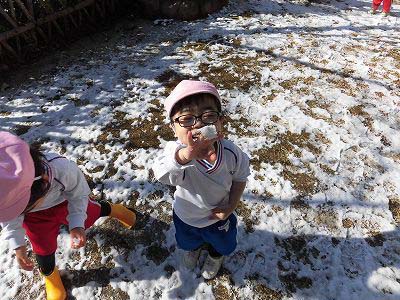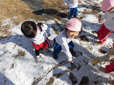 昨日は久しぶりに神戸の街に雪が積もりましたね!今朝も園庭にはまだ雪が残っていました☆