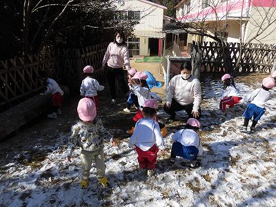 寒かったので短い時間ではありましたが、雪にふれて、雪だるまも作って…大興奮の子どもたちでした♪