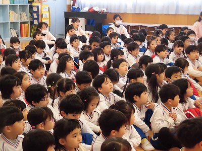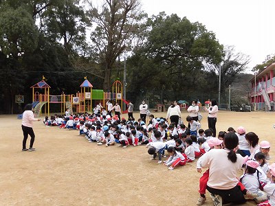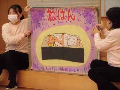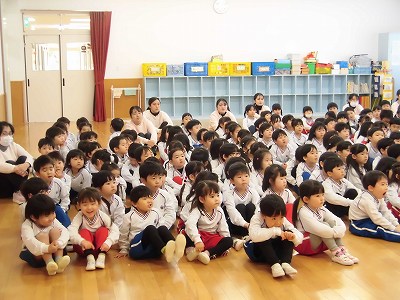 そのあとは大型紙芝居を見ました。みんな真剣な表情で見ていましたよ。
