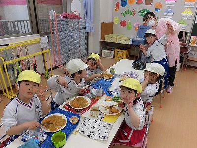 みんなが楽しみにしている給食!今日はキーマカレー、おいしかったね♡