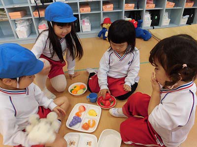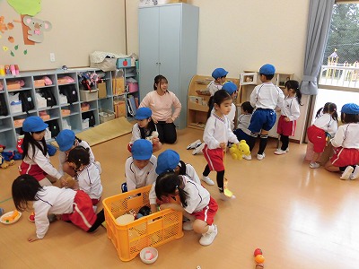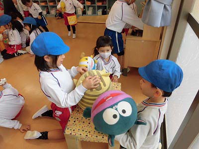 今日は年長あやめ組さんが満3歳児こあら組さんのお部屋へ♪