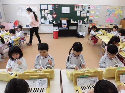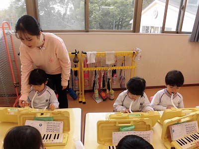 ピアニカをしました!「よろこびのうた」のおけいこが始まりましたよ。まずはお口で音階を歌ってみて、それからゆっくりと「ミ・ミ・ファ・ソ…」と弾いてみました☆
