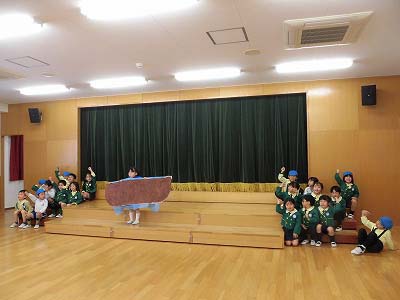 年長になると一人でセリフを言うので今はまだ自信なさげな様子もありますが、それでも自分の出番になると張り切って舞台へ上がっている子どもたちです。