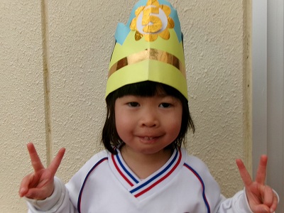 たんじょうびの歌をうたいます。「たんたんたんたんたんじょうび~♪」