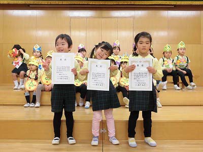 先日の「私学総連合美術展」に絵が選出されたお友だちの表彰を行いました!おめでとう!