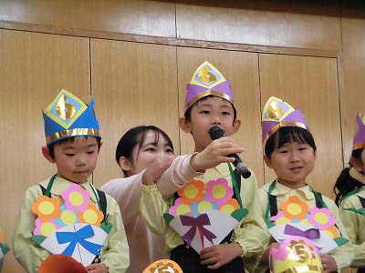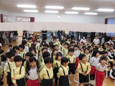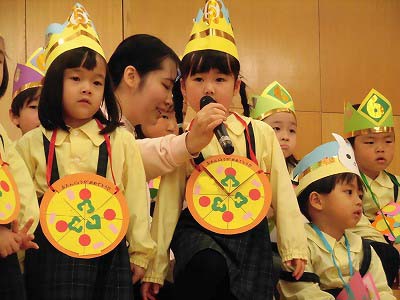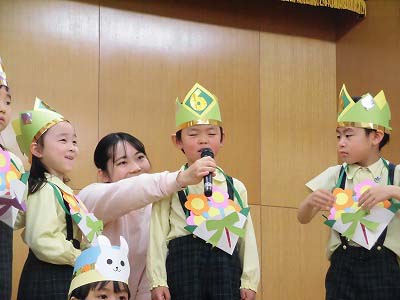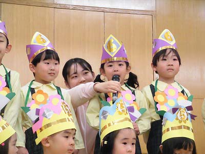 誕生児の自己紹介です。「○○組の△△△△です!□歳になりました!大きくなったら~になりたいです!」と元気に発表してくれました♪