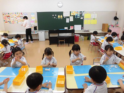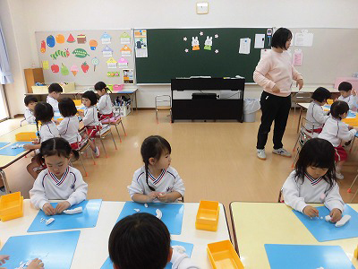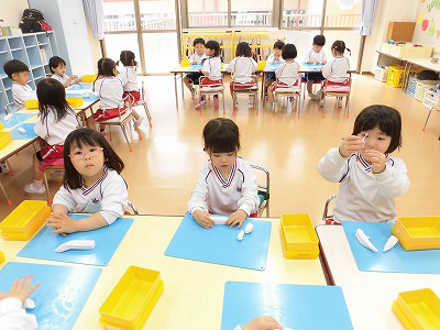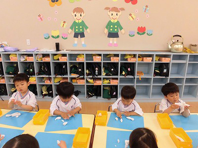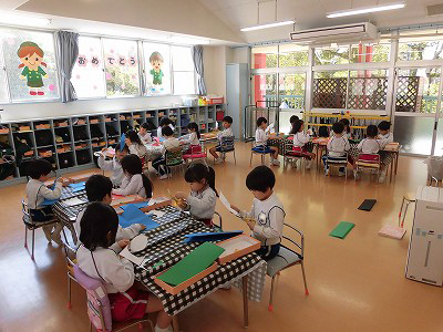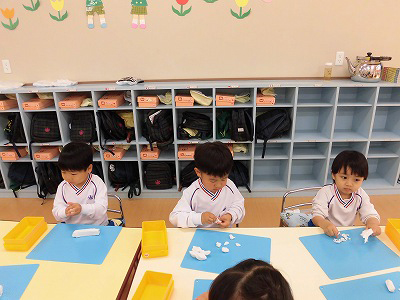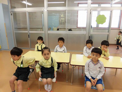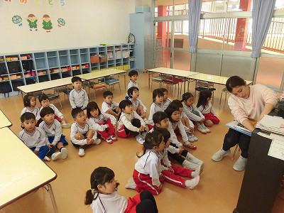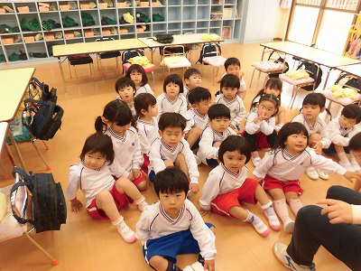 今日は4月のお誕生会。全園児がホールに集まり、4月生まれのお友だちをお祝いします♡