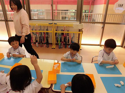 誕生児の自己紹介です。「〇〇組の△△△△です、□歳になりました!大きくなったら~になりたいです!」と元気に発表してくれました♡