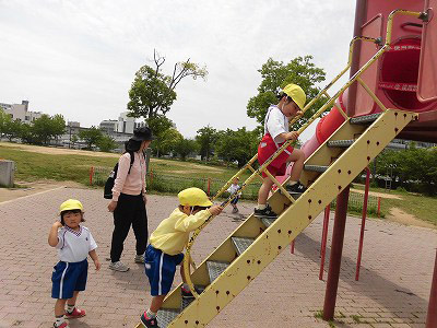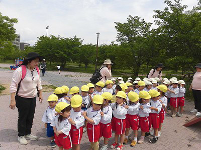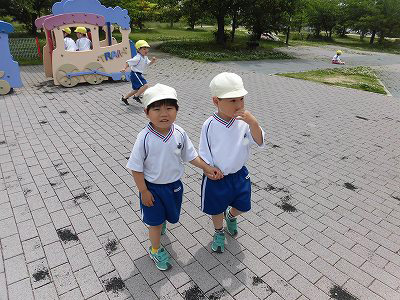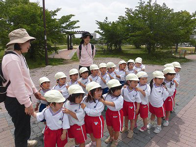 今日は年少さんの初めての園外保育!「公園にいくの?」「すべり台ある?」ととても楽しみにしながら出発しました♪