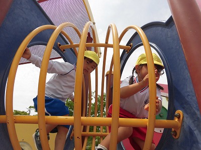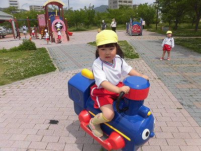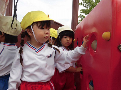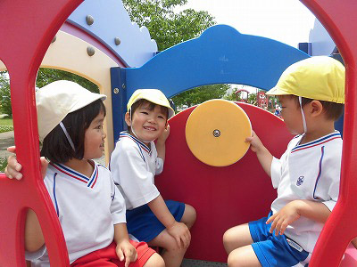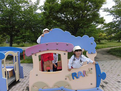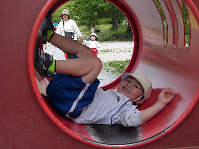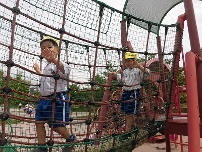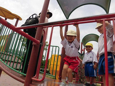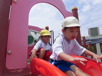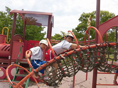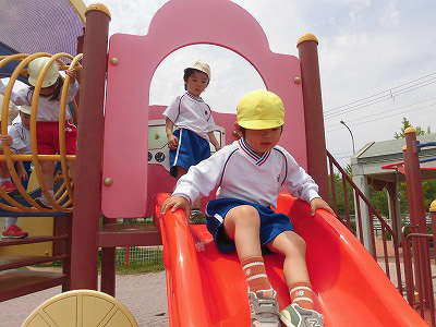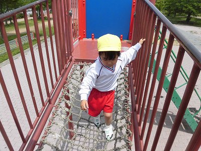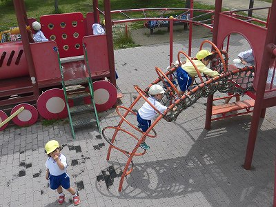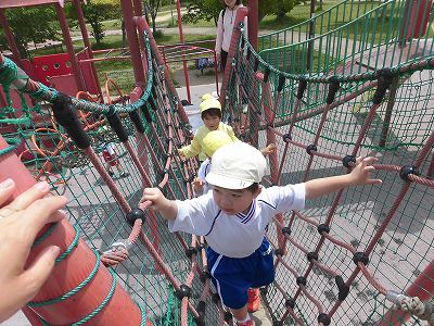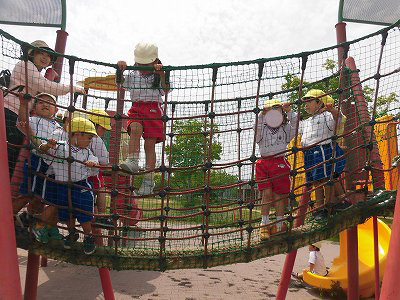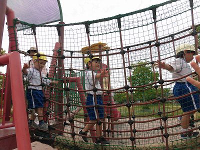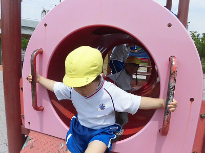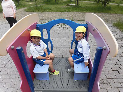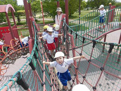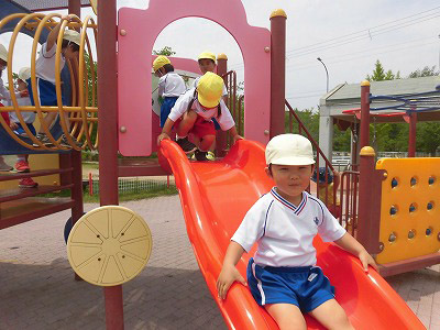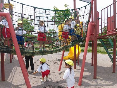 「行ってきまーす!」の声とともに遊具へ走っていった子どもたち。幼稚園とは違った遊具に興味津々!全力で遊んでいましたよ♪「勝手に遠くへ行かない、順番こしながら仲良く遊ぶ」などのお約束もしっかり守ることが出来ていました!