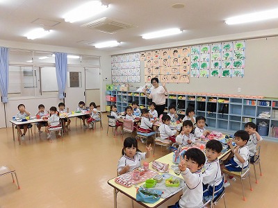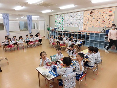 たくさん遊んだ後は幼稚園へ帰り、嬉しいお弁当タイム♡みんな「見て見て~!」「ママが作ってくれた~♡」とお弁当を見せてくれました!