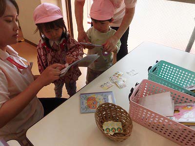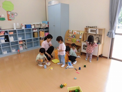 まずは先生と一緒に「あゆみ」にシールを貼ってからおもちゃで楽しく遊んだよ♪