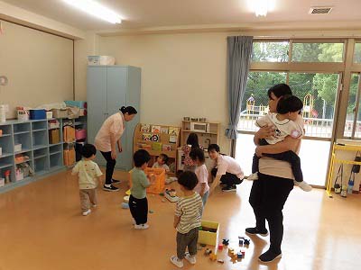 先日、入会式を行ったこあらキッズ。いよいよ今日から慣らし保育です☆おうちの人と離れるときに泣くかな…と思いきや、ほとんどの子が泣かずにお部屋に来てくれました。