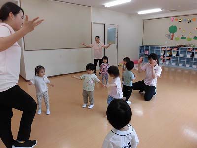 先生と一緒にアンパンマンのダンスを踊ったよ!ノリノリでまねっこしてくれました!