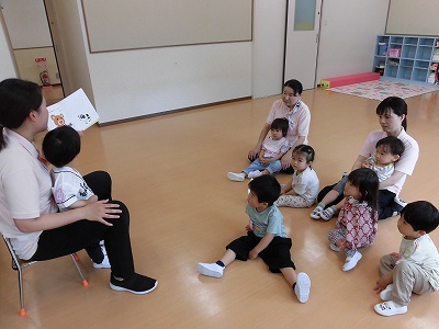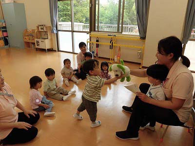 お名前呼びではみんな「はーい」と上手にワンワンにタッチできました!絵本も静かに見ていたね♪
