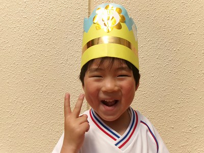 製作活動をしていたきくさん。「クジラ作ってんで!」と嬉しそうに見せてくれました。今日はクジラの周りにお絵描きを楽しみました☆